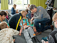 Anlässlich der bundesweiten „Woche der Wiederbelebung“ vom 19. bis 25.9.2016 initiierte das Hittorf-Gymnasium gemeinsam mit der Raphaels-Klinik am 19. Und 20.9.16 Aktionstage zum Thema „Ein Leben retten. 100 Pro Reanimation“.