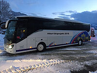 Nach einer guten Fahrt sind alle Schülerinnen und Schüler mit ihren Begleitern im verschneiten Oberndorf gut angekommen.