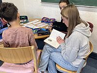 Hittorf-Schüler:innen aus der Klasse 10c lesen Kindern in der Matthias-Claudius-Grundschule vor