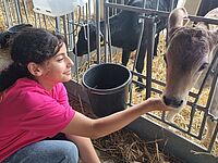 Schülerinnen und Schüler der fünften Klasse auf dem Bauernhof