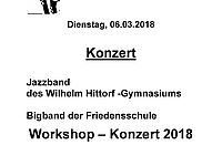 Seit 26 Jahren existiert ein außergewöhnliches musikalisches Projekt zweier Schulen in Münster. Die Bigband der Friedensschule und die Jazzband des Wilhelm-Hittorf-Gymnasiums erarbeiten immer im Januar ein gemeinsames Programm, das dann in einem Konzert präsentiert wird. Die Bands zeigen dabei das ganze Spektrum der Bigband-Musik von Swing über Blues, Latin und Funk und Rock. In diesem Jahr…