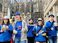 Kölle alaaf! Die Samba-AG war auch in diesem Jahr wieder beim traditionellen „Schull- und Veedelszöch“ dabei und unterstützte die befreundeten Trommler des Kölner „Humboldt-Gymnasiums“ tatkräftig.
