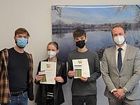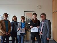 Dennis Watzema (EF) und Gereon Mendler (Q2) wurden am 01.03.2016 für ihre philosophischen Essays mit Urkunden geehrt, die ihnen von Herrn Schrand überreicht wurden.