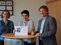 "Trifft, wenn Sie eine Entscheidung treffen, Ihr Gehirn die Entscheidung?" - mit dieser Frage beschäftigte sich Bardia Amirmiran (Q1) erfolgreich am Landeswettbewerb Philosophischer Essay und bekam dafür am 22.03.2017 eine Urkunde von Herrn Schrand überreicht.