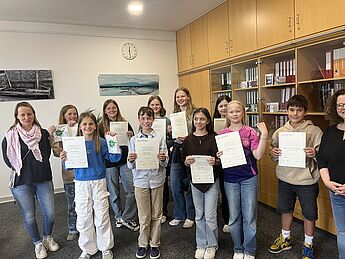 - Bei dem Projekt „Worte, die wirken“ konnten aus der 5b Jonas Duric, Jakob Detert, Martim Vicente Rodrigues, Tristan Hey, Christoph Schmalle, Linda Ruppert, Marie Tecklenburg und Tuana Gencer mit ihren Werken überzeugen. Aus der 5d haben ebenfalls Marie Elger, Feline Bogatzki, Paul Gussone, Luise Kehlbreier und Judith Witte gewonnen
