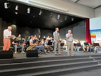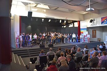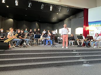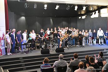 Ein besonderer Moment war es dann aber auch, als die Workshop-Bigband einen Titel ohne diese erfahrenen Musiker spielen konnte und sich somit die Zukunft der beiden Bigbands präsentierte. Spätetens da war allen im Saal klar, dass das 30. gemeinsame Konzert kommen wird ...