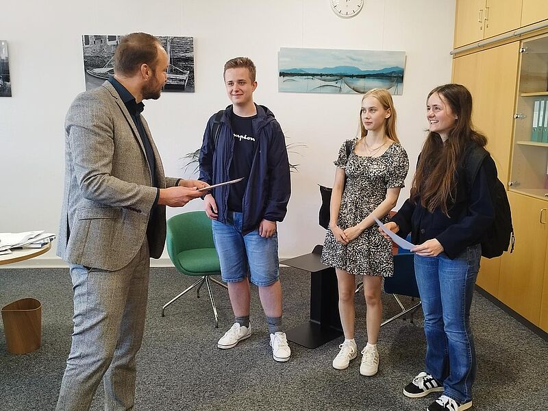 Als Beitrag „Globale Lebensmittel - Von der Plantage bis zum Teller-Was Essen is(st)“ reichten Maximilian M., Milana S., Karla S. (10c). ein selbst erstelltes Video „ Save the food“, eine interaktive Mapstory zu globalen Zusammenhängen und Auswirkungen des Konsums von Lebensmitteln (Orangensaft, Fleisch) und eine Infostellwand für die Schulöffentlichkeit ein und gewannen bundesweit den vierten Preis in der Alterskategorie. Wir gratulieren!
