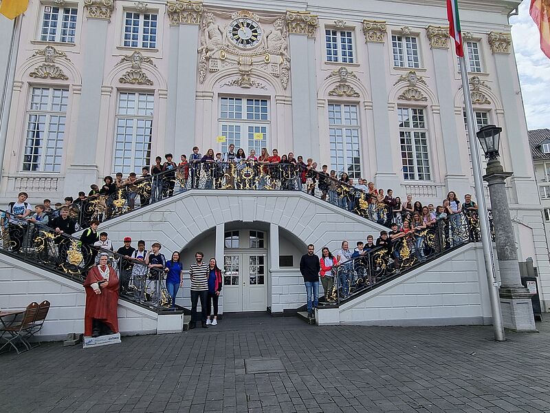 Anlässlich des 75-jährigen Bestehens der Schule machte sich die Schulgemeinde des Hittorfs auf die Spuren des Namensgebers der Schule. Mit einem Sonderzug ging es von Münster nach Bonn, um in der Geburtsstadt Hittorfs auf dessen Spuren die Stadt zu erkunden.