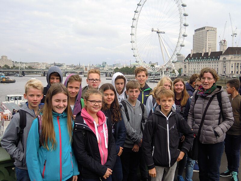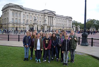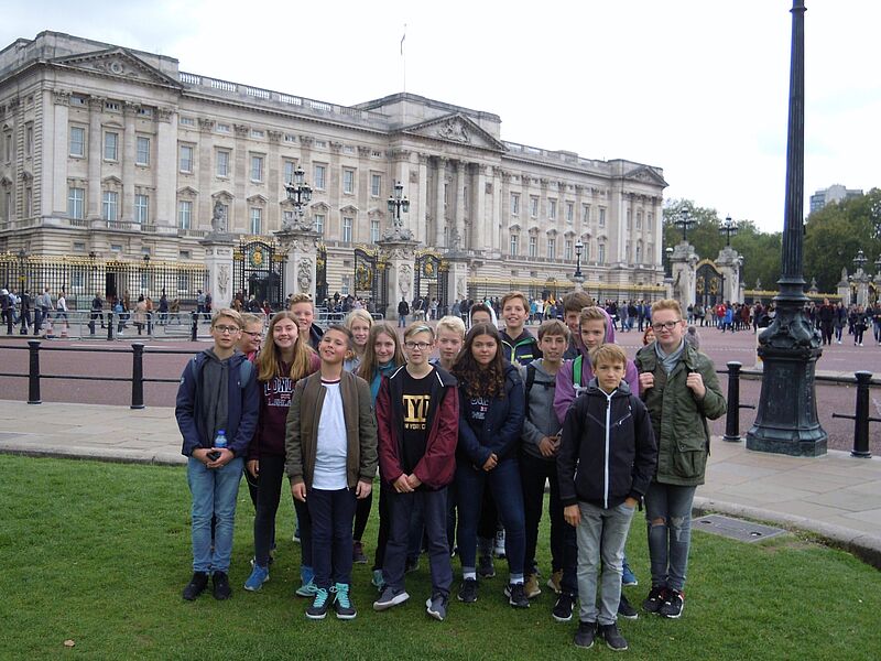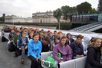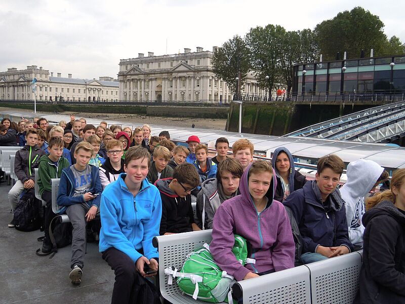 Am Freitag, unserem letzten Tag, waren wir in London. Wir sind mit dem Bus nicht mitten in die Stadt gefahren, sondern sind im Südosten, in Greenwich, ausgestiegen. Nach einem Spaziergang durch Greenwich Park sind wir zum Pier gelaufen zu einem Ausflugsschiff, welches uns über die Themse gefahren hat. Auf dieser Fahrt haben wir viele Sehenswürdigkeiten, z. B. die Tower Bridge und den Tower, gesehen. Schließlich sind wir dann in Westminster am Big Ben ausgestiegen. Dort haben wir ein schönes Klassenbild auf der Brücke gemacht. Von dort sind wir dann an den Houses of Parliament und der Westminster Abbey vorbei durch den St. James‘ Park zum Buckingham Palace gelaufen. Weiter ging es über die Mall zum Trafalgar Square und zu Covent Garden.
