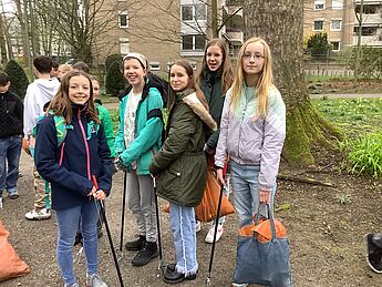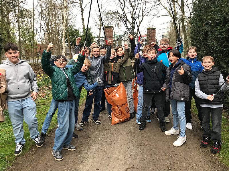 Mit Zangen, Handschuhen, Säcken und vor allem viel Engagement gingen am Freitag, 15.3.24, acht Klassen bzw. Kurse unserer Schule los, um sich aktiv für den Schutz und die Pflege unserer Umwelt einzusetzen. Zum wiederholten Male nahmen wir an der Aktionswoche „Sauberes Münster“ teil. Dieses Projekt der Abfallwirtschaftsbetriebe Münster (awm) wird von vielen Schulen, Aktiven und Freiwilligen unterstützt.