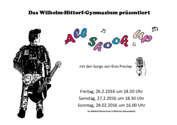 Karten für die Aufführungen am 26., 27. und 28.02. sind im Sekretariat der Schule und an der Abendkasse erhältlich. Herzlich eingeladen sind alle Schülerinnen und Schüler, Eltern, Geschwister, Verwandte, Kolleginnen und Kollegen und Freunde des WHG.