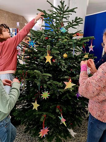 Danke an die ganze Junior SV, die in diesem Jahr wieder das Schmücken der zwei Tannen im WHG übernommen hat, und an alle Klassen, die den Baumschmuck hergestellt haben. Auch Benni und Henk (große SV) sei herzlich gedankt für das Besorgen der Bäume, die nun die Schulflure schmücken. Wir wünschen eine schöne Vorweihnachtszeit!