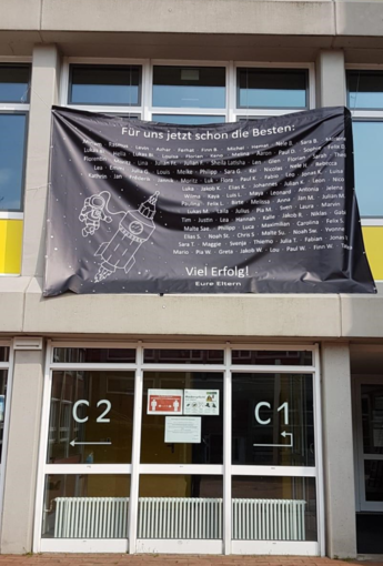 Am heutigen letzten Schultag wurde die Q2 von den Eltern auf dem Oberstufenschulhof mit einem großen Banner überrascht. Hierdurch bedanken sich die Eltern für die unter Pandemiebedingungen erbrachten Leistungen und wünschen den angehenden Abiturientinnen und Abiturienten für die anstehenden Prüfungen viel Glück und alles Gute.