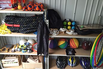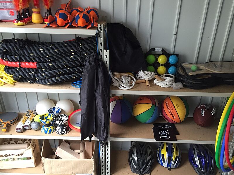 Die ausgebildeten Sporthelferinnen und Sporthelfer aus den Jahrgangsstufen EF sowie Q1 nutzten den Montagnachmittag dazu, die vielzähligen von der Schülerschaft ausgewählten und von der Schule neu zur Verfügung gestellten Sportgeräte aufzubauen (siehe Bild), leidenschaftlich zu erproben und anschließend sorgfältig in unserer Pausensporthütte (siehe Bild) zu verstauen.
