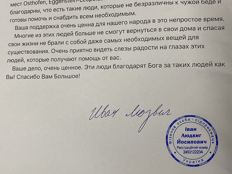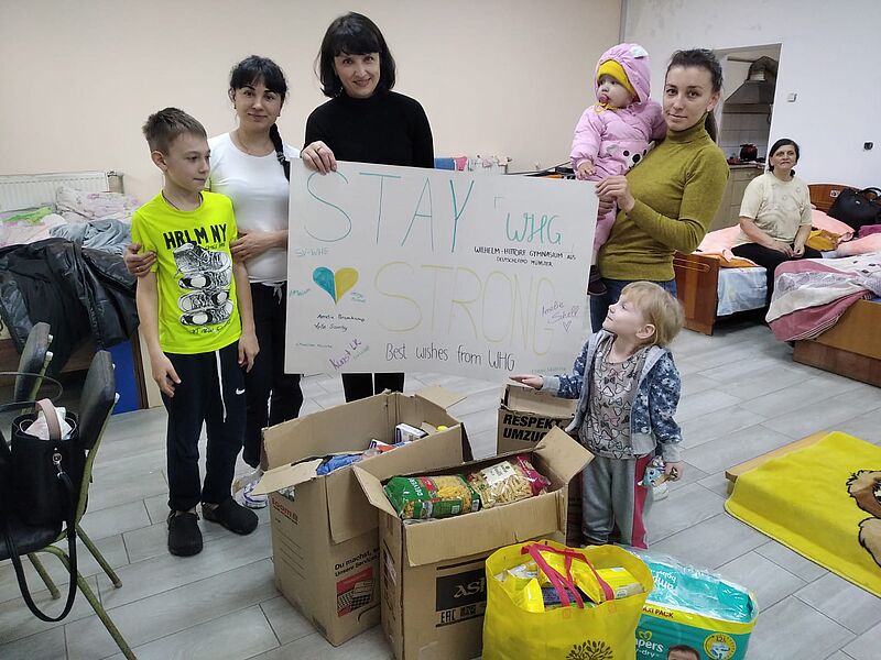 Von den Organisatoren vor Ort wurde außerdem noch eine Danksagung verfasst, in der sie dem starken Engagement und der großen Bereitschaft unserer Schule von Herzen danken. Wir als Schülerinnen und Schüler der SV bedanken uns auch, nämlich bei der Schüler- und Elternschaft für ihr Engagement und die Spendenbereitschaft und wollen außerdem durch die Bilder aus der Ukraine noch einmal besonders die Freude, welche man in den Gesichtern der Menschen sieht, hinweisen.