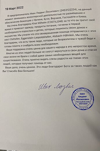 Nach der erfolgreichen Spendenaktion für die Ukraine, welche in der vorletzten Woche an unserer Schule stattgefunden hat, ist der Transporter nun endlich in der ukrainischen Stadt Uschgorod angekommen.