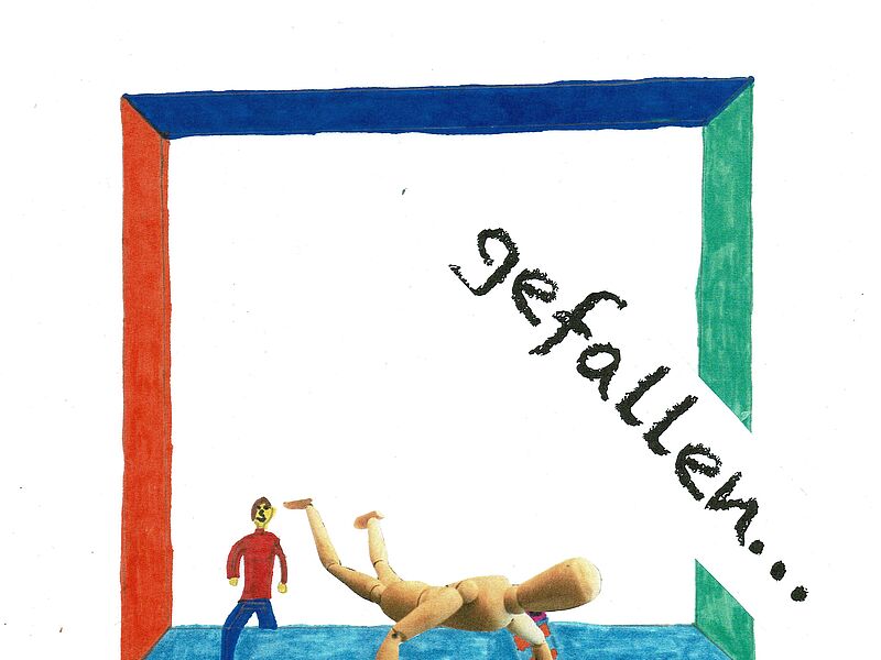 Ein Bilderrahmen ist trotzdem nicht für jedes Kunstwerk die geeignete Präsentationsmöglichkeit. Eine dauerhafte, passive Fixierung in einem Bilderrahmen wird den (über-) beweglichen Figuren der jungen Künstler*innen nicht gerecht. Stattdessen kommt die Klasse 6d der Forderung ihrer Kunstwerke an eine unkonventionellere Präsentationsform nach. Sie befreien ihre Figuren in Form eines Stop Motion Films aus ihren Bilderrahmen. Die Legetrickfilme ermöglicht den Wechsel von unbeweglich in beweglich, von einem analogen ins digitale Format.