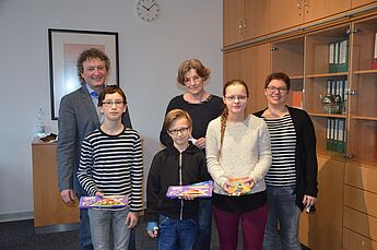 Im Schulleiterbüro trafen sich die Teilnehmer des Wettbewerbes Aus der Welt der Griechen und ihre Lehrerinnen Frau Börger und Frau Bunge mit Herrn Schrand.