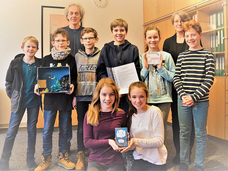 Viele Lateinschüler/innen aus unserem 6. und 7. Jahrgang nahmen wieder an diesem Kreativ-Wettbewerb teil und erstellten sehr beeindruckende Produkte. Den 3. Platz belegten Johannes Klingeberg, Leon und Lukas Wolzenburg mit ihrem Diorama „Odysseus und die Scylla“. Den 2. Platz errangen David Klose, Jan Epping und Clara Mersmann mit ihrem Hörspiel „Odysseus und die Sirenen“ und Beeke Drechsler mit ihrem Quartett.