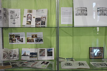 Passend zum Holocaustgedenktag am kommenden Montag, den 27.01.2020, haben wir, die Schülerinnen und Schüler des WHGs, eine Ausstellung mit dem Schwerpunkt Erinnern an die Opfer des Holocaust angefertigt. Der Holocaustgedenktag ist dazu da, um an die Opfer des Nationalsozialismus und an die Verbrechen der NSDAP zu erinnern. Mit der Ausstellung soll auch das öffentliche Gedenken innerhalb der Schule in den Mittelpunkt gestellt werden. Unser Fokus liegt darauf, den geschichtlichen Hintergrund durch Plakate, die die zwei Geschichtszusatzkurse der Q2 erstellt haben, mit unseren angefertigten gestalterischen Werken zu verknüpfen, um eine Ausstellung zu konzipieren, die die Betrachterinnen und Betrachter nicht nur informiert, sondern auch zum Nachdenken anregt. Mehrere Kurse haben an der gemeinsamen Ausstellung mitgearbeitet. U.a. sind Skizzenbücher der EF-Schülerinnen und Schüler ausgestellt, die im vergangenen Jahr auf der Gedenkstättenfahrt in Weimar-Buchenwald zu dem Thema gearbeitet haben. Auch die zwei Geschichtszusatzkurse der Q2 haben zum Teil künstlerisch gearbeitet, indem sie sich mit Biografien von jüdischen Personen auseinandergesetzt haben und zeichnerische Portraits erstellt haben. Der Kunst-LK der Q1 legte der Schwerpunkt auf die Aspekte „Alptraumhaftes“ und versucht durch künstlerische Gestaltungen aller Art (Radierungen/Drucke, Malereien, Zeichnungen) v.a. Wirkungen beim Betrachter zu erzeugen und zu einer aktiven Auseinandersetzung mit der Ausstellung anzuregen.