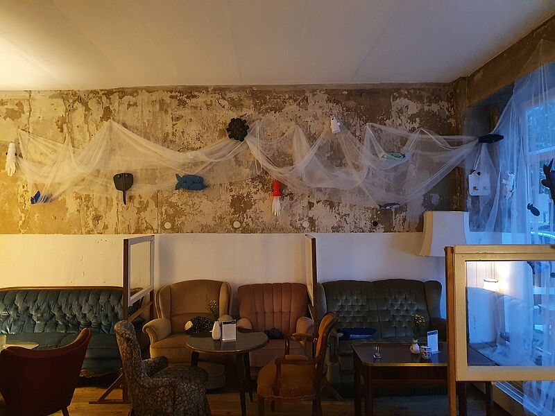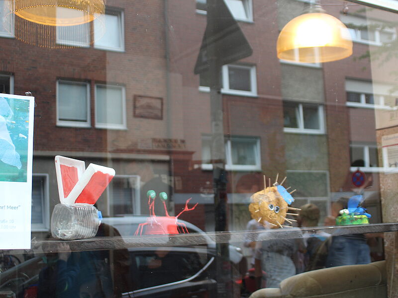 Unter der Anleitung von Frau Voß entwickelte die Klasse in Teamarbeit ein Ausstellungskonzept, welches nun mindestens einen Monat im nahe gelegenen Café August betrachtet werden kann. Durch eine großzügige Spende von Franke & Franke wurden zudem eigene Postkarten gestaltet, die für einen guten Zweck im Café August erstanden werden können. Der Erlös wird gespendet an "Viva con Aqua", eine Organisation, die sich gegen Plastik in unseren Meeren einsetzt und für den Zugang zu sauberem Trinkwasser, Sanitärversorgung und Hygiene. Ein Besuch lohnt sich in jedem Fall!