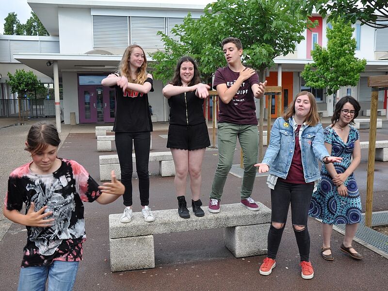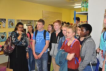Tags darauf der Empfang am Collège in Libourne. Der Schulleiter des Collége Marguerite Duras, Herr Thierry Vayssière, der stellvertretende Schulleiter, Herr Jean-Louis Michaux und Frau Evelyne Sacchet, die Organisatorin des Austausches auf französischer Seite, hießen die Jugendlichen aus Deutschland und ihre Begleitlehrer Gesa Arnold und Manfred Ossege mit einem "Pot d'accueil" herzlich willkommen und informierten sie über das Programm der nächsten Tage.