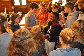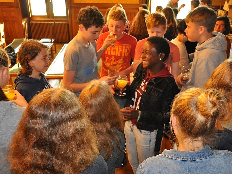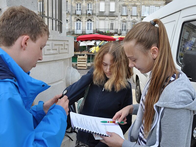 Am Freitag begrüßten Bürgermeister Philippe Buisson und die Conseillère Municipale Gabi Höper die Jugendlichen aus Münster im Rathaus der Stadt. Anschließend erkundeten die Hittorfer den Markt von Libourne im Rahmen einer Rallye.