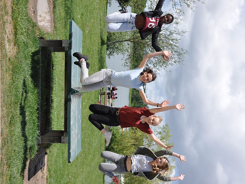 Am Montagvormittag konnten die Münsteraner am Unterricht ihrer französischen Corres teilnehmen und einen Eindruck vom Unterricht in Frankreich erlangen. Nachmittags wetteiferten gemischte deutsch-französische Teams im Rahmen einer Sportolympiade, bei sengender Sonne und schwüler Hitze.