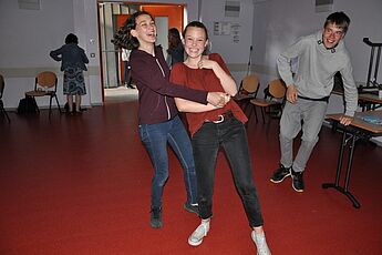 Am Nachmittag folgte dann ein sportlicher Orientierungslauf am See von Dagueys und am Abend startete eine Party in den Räumen der Schule, mit Tanz, Essen, Spielen und vorsichtigen Annäherungen.