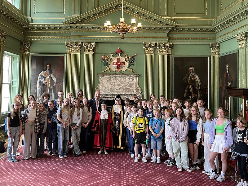 Am Montagmorgen den 24.06. haben wir uns um 8:30 Uhr am P+R Weseler Straße getroffen. Von dort aus sind wir mit dem Bus zum Flughafen Düsseldorf gefahren. Nachdem Flug landeten wir sicher in Manchester. Als wir mit dem Bus an der Huntington School in York ankamen, wurden wir herzlich empfangen. Den Nachmittag verbrachten wir in unseren Gastfamilien. Am nächsten Tag durften wir den Unterricht unserer Austauschschüler*innen miterleben. Mittwoch unternahmen wir einen gemeinsamen Ausflug nach Whitby. Dort konnten wir sowohl den Strand als auch den Ort besuchen. Zum Abendessen waren wir im Quayside, wo es für alle Fish and Chips oder vegetarische Würstchen mit Chips gab. Auf dem Weg nach Withby haben wir noch einen Abstecher zum Harry Potter Bahnhof (Gothland Station) gemacht. Einen Tag später haben wir York erkundet und die Lord Mayor mit der Sheriff und dem Sheriff Consort in vollem Ornat im Mansion House kennenlernen dürfen. Es folgte eine Führung durch das Mansion House.