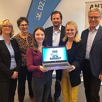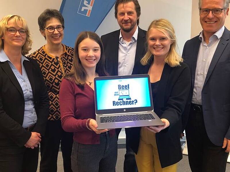 Das soll nun der Vergangenheit angehören, denn die Kurse gewannen einen Klassensatz Notebooks bei der gemeinsamen Aktion von Antenne Münster mit ihren Partnern Immobilienbank DZ HYP und LapStore. Janne nahm bei einer kleinen Feierstunde stellvertretend für die Kurse einen Rechner in Empfang.