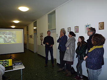Die Ausstellung wurde am Freitagnachmittag, dem 11. Januar 2019, durch Herrn Posingies, Herrn Marcus und Frau Schneider eröffnet. Herr Wernsing vom Verein "Lichtstrahl Uganda" erzählte anhand einer Diapräsentation von der Fahrrad-Reise einer Lichtstrahl-Uganda-Gruppe nach Gulu, zu der auch unser Schulleiter, Herr Schrand, gehörte. In Gulu war eine Fahrradstation fertiggestellt worden, die durch den Sponsorenlauf während eines Sportfestes der Hittorf-Schüler/innen finanziert werden konnte.