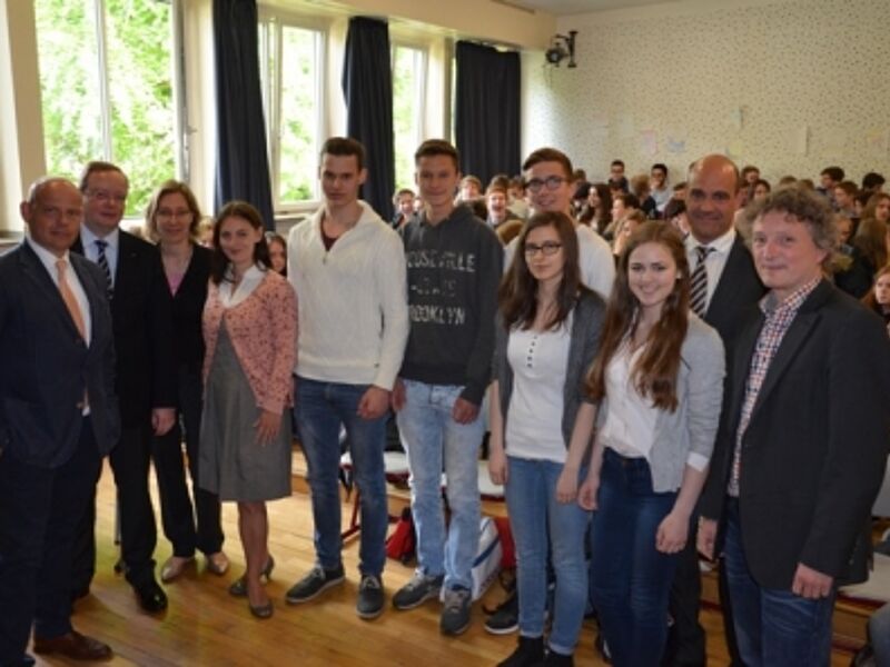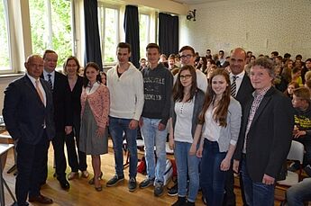 An das Wilhelm-Hittorf-Gymnasium kamen Christian Gutsche, Geschäftsführer und Gesellschafter Oevermann Immobilien GmbH, Christoph Bickmann, Vorstandsvorsitzender Darlehenskasse Münster eG und Johann Friedrich Knubel, Geschäftsführer und Inhaber der Firmengruppe Knubel. Unter den erfolgreichen Schülern überzeugte Julia Fischer die Jury in besonderem Maße, sie kann nun als Erstplazierte an einem professionellen Assessementtraining teilnehmen. "Wichtig es, dass neben den fachlichen Qualifikationen auch die Persönlichkeit in einer Präsentation deutlich wird.", waren sich Kubel und Schrand einig.