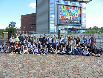 Zum Abschluss fuhren die Gastschüler gemeinsam mit den Gastgebern ins Rock-und Popmuseum Gronau. Hier hatte es der Gruppe besonders der „Green-Screen“ angetan; in verschiedener Verkleidung und mit diversen Accesoires ausgestattet wurde viel Karaoke gesungen. Anschließend ging es noch für einen kurzen Stadtbummel nach Enschede.