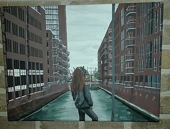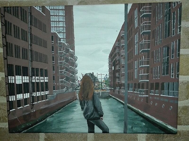 Für den Januar haben es gleich zwei unglaublich gute künstlerische Arbeiten aus der Jgst. Q1 geschafft. Dabei handelt es sich um zwei malerische Arbeiten einmal von Sophie Dammaschke (Fußballspiel) und einmal Julia Göllmann (Speicherstadt https://www.wilhelm-hittorf-gymnasium.de/Hamburg).
