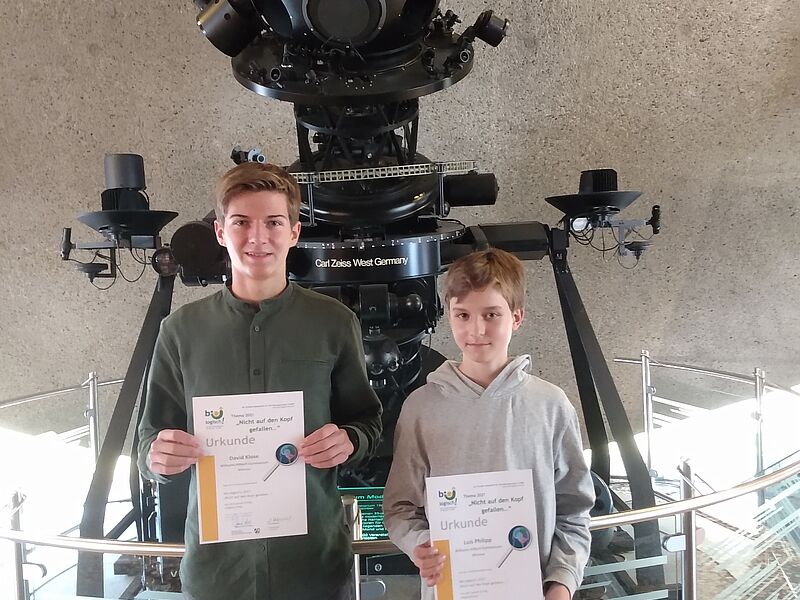 ... sind David und Luis aus dem Differenzierungskurs „Experimentelle Naturwissenschaften“, die beim diesjährigen Wettbewerb „Bio-logisch!“ unter mehr als 2800 Teilnehmern zu den Besten ihres Jahrgangs gehören. Erschwerend kam hinzu, dass der Wettbewerb in diesem Jahr unter Corona-Bedingungen während des Wechselunterrichts teils in der Schule, teils zuhause bearbeitet werden musste.