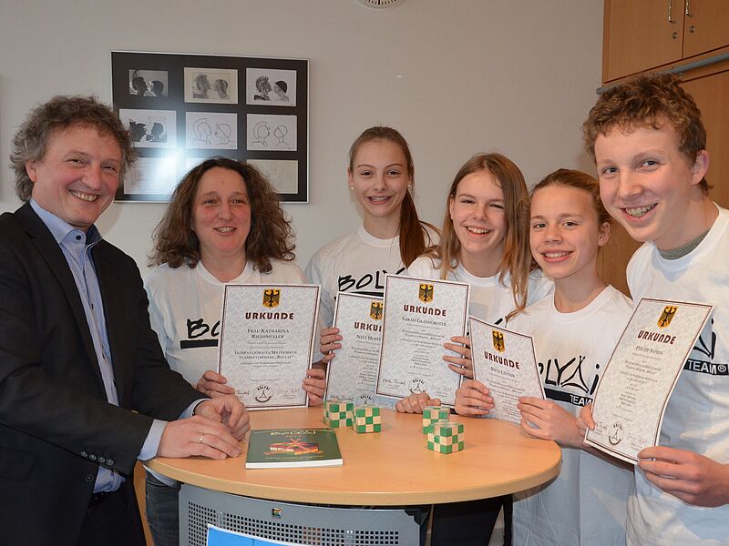 Der Bolyai-Wettbewerb ist ein mathematischer Teamwettbewerb. Innerhalb von 60 Minuten müssen zahlreiche anspruchsvolle Aufgaben (ohne Taschenrechner!) in vierer Teams gelöst werden. Der Wettbewerb kommt ursprünglich aus Ungarn, wo über 100 000 Schülerinnen und Schüler teilnehmen. Seit fünf Jahren dürfen sich auch deutsche Schülerinnen und Schüler am Wettbewerb beteiligen.