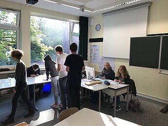 Bei einer Wahlbeteiligung von 86,52% zeigten die Klassen und Kurse von der 8. Klasse bis zur Q2 ein großes Interesse an der Wahlsimulation, die durch die Fachschaft Sozialwissenschaften/ Politik organisiert wurde. Von der 1. bis zur 5. Stunde hatten 586 Schülerinnen und Schüler die Möglichkeit zur Stimmabgabe, die von den Wahlhelfern im Wahlbüro koordiniert wurde.