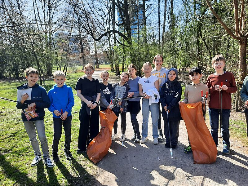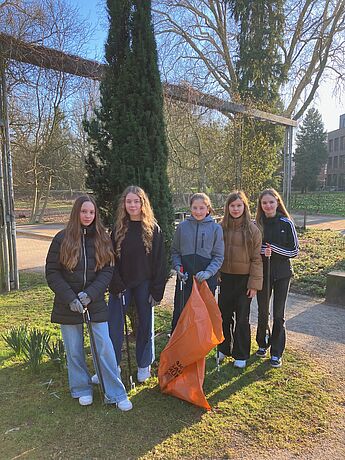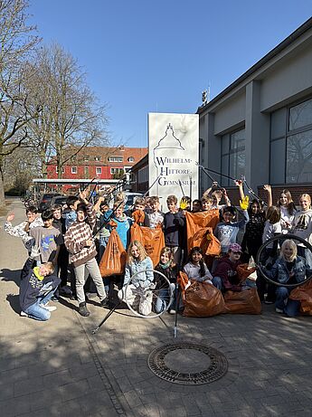 Das ist nicht unser Müll, aber das ist unser Schulhof und unser Planet! Unter diesem Motto gingen am Freitag, dem 21.2.25, 11 Klassen oder Kurse los, um sich um sich an der Aktion „Sauberes Münster“ der Abfallwirtschaftsbetriebe Münster (awm) zu beteiligen. Das WHG als „Schule der Zukunft“ ist natürlich dabei, genauso wie viele andere Organisationen und Freiwillige in Münster.
