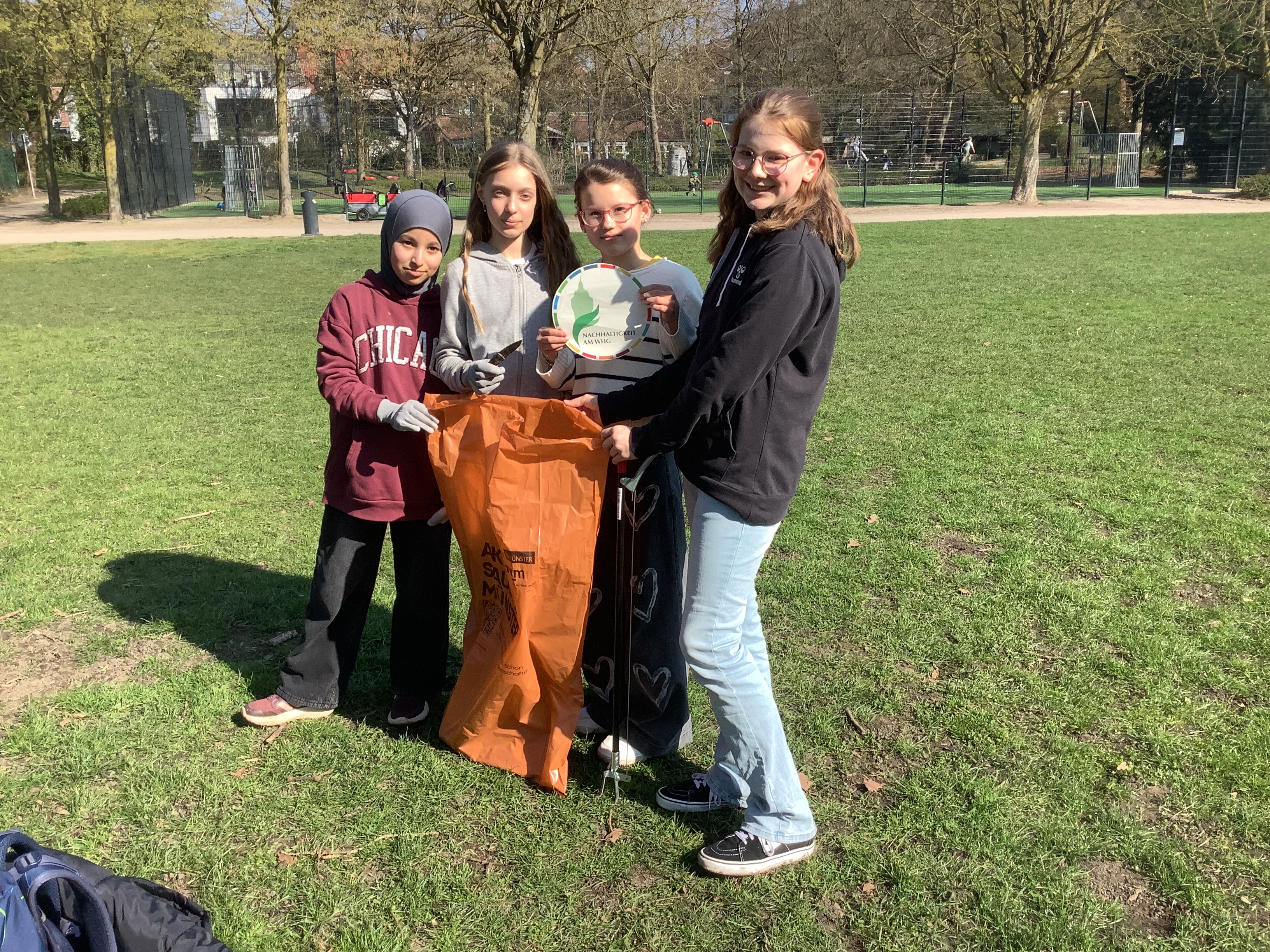 Unter diesem Motto beteiligten sich verschiedene Klassen unserer Schule am Montag, dem 23.03.2026, an der Aktion „Sauberes Münster“ der Abfallwirtschaftsbetriebe Münster (AWM). Als „Schule der Zukunft“ ist das WHG natürlich dabei, genauso wie mehr als 16.000 Freiwillige in ganz Münster.