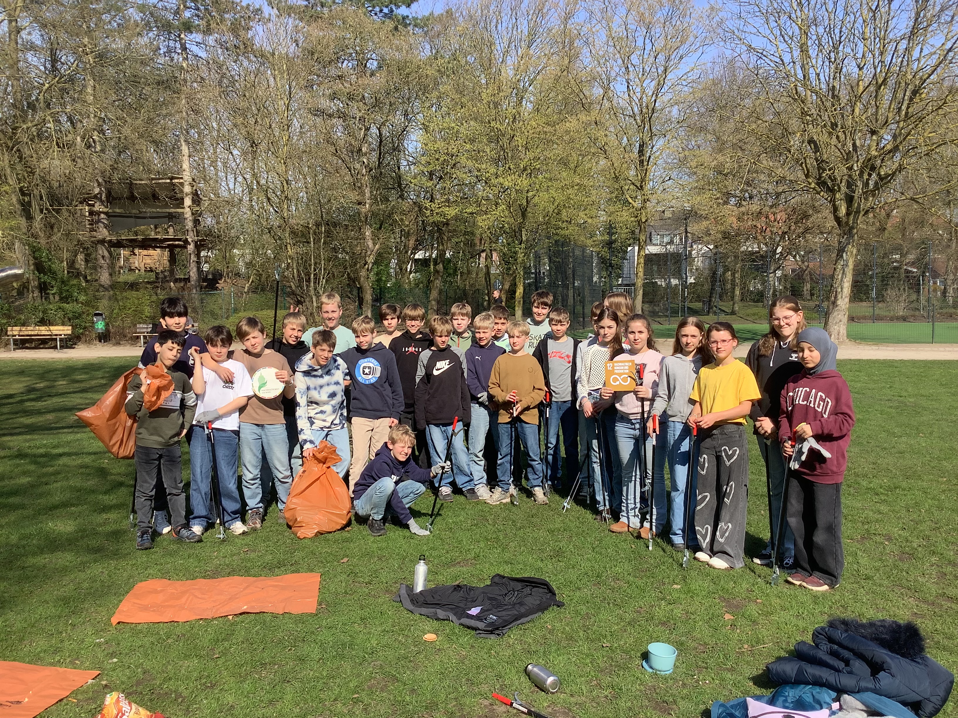 Die Teilnahme an der Aktion „Sauberes Münster“ lässt sich den Nachhaltigkeitszielen „Leben an Land“, „Nachhaltiger Konsum“ und „Maßnahmen für den Klimaschutz“ zuordnen. Für uns stand der achtsame und nachhaltige Umgang mit dem eigenen Müll im Mittelpunkt.