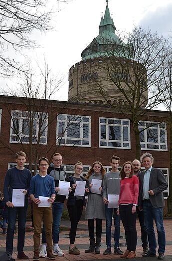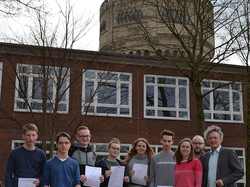 Die Teilnehmerinnen und Teilnehmer des Wettbewerbs Jugend debattiert 2019 wurden am Montag von Schulleiter Christian Schrand für ihre erfolgreiche Reise nach Vreden mit dem Überreichen der Urkunden geehrt.