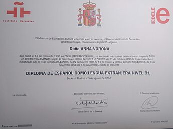 Da ich das DELE Diplom ziemlich spontan parallel zu den Abitur Klausuren gemacht habe, war es zunächst sehr stressig. Die Vorbereitungszeit war aber sehr gut. Das Buch, mit dem wir uns vorbereiten konnten, war sehr hilfreich. Vor allem die mündlichen Übungen und Prüfungssimulationen, die wir gemacht haben, haben mir sehr geholfen und waren fast identisch mit der mündlichen Prüfung selbst. Es war eine entspannte und trotzdem produktive Lernatmosphäre. Die Vorbereitungsphase hat mir sehr viel Spaß gemacht.