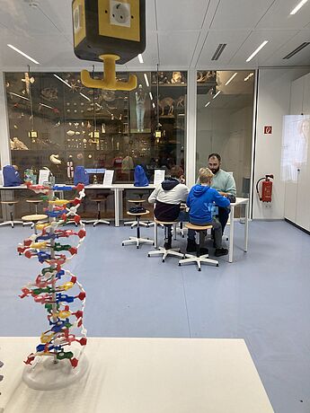 In Begleitung von Herrn Dr. Scheffer und Frau Riethmüller besuchte die Klasse 5b die Genetikausstellung im LWL-Museum für Naturkunde. In spannenden Workshops, angeleitet durch Studierende der Didaktik der Physik, lernten die Schüler*innen, welche Gene sich gerne durchsetzen, wie aus Wildkohl Rosenkohl gezüchtet wird oder wie man mit Hilfe der Genanalyse der Dieb der Schokokekse schnappt. In der zugehörigen Ausstellung faszinierte besonders die Ähnlichkeit des Erbgut einer Bananenpflanze mit dem des Menschen. Auch hier gab es viel zu lernen und zu entdecken.