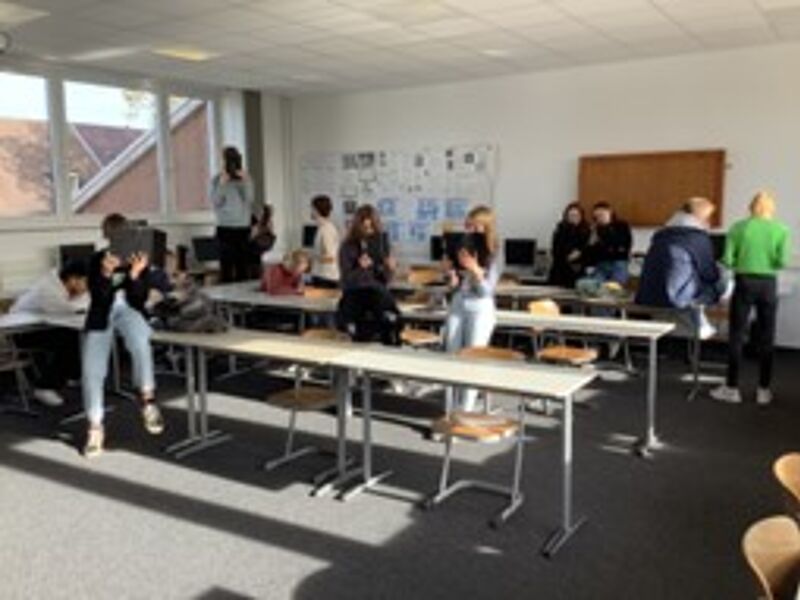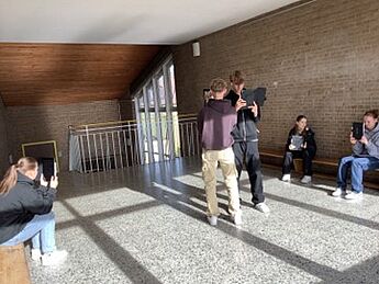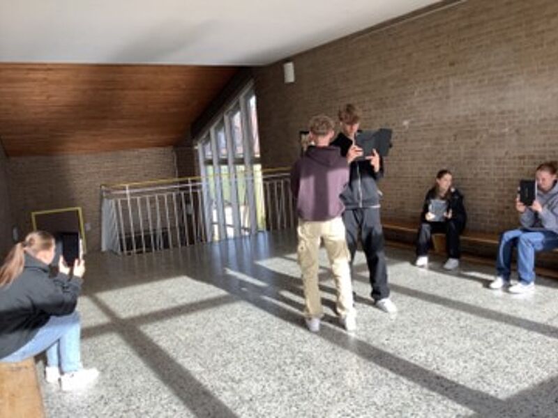 Die 9c testete mit Spannung und Begeisterung im Rahmen des Wirtschaft/Politik-Unterrichts die Klima-App des WDR auf einer Schultour- innovativ in der Form der Augmented-Reality-Technologie (AR) und eindrücklich im Erleben. In den Klassenraum wurden virtuelle Bilder und dreidimensionale Animationen (Waldbrand in Gummersbach, Flutkatastrophe im Ahrtal, Generation Klimawandel, Fridays for future) gesetzt. Personen konnten virtuell in den Klassenraum platziert werden, so als ob sie uns wirklich auf Augenhöhe gegenüberstehen würden. Mit dem Klima-Game konnte das Meer von Plastikmüll befreit werden.