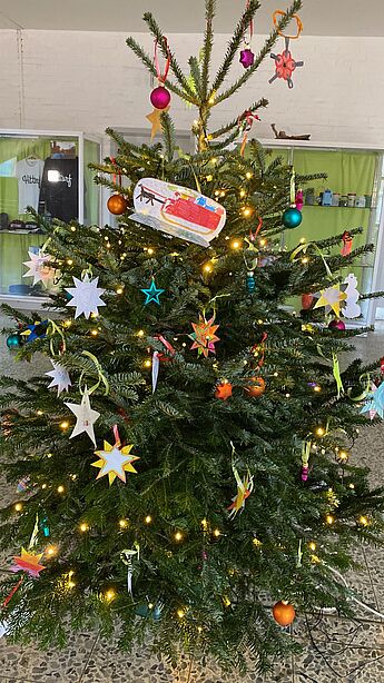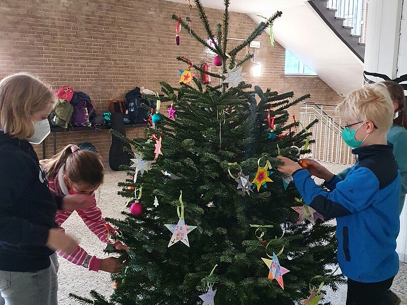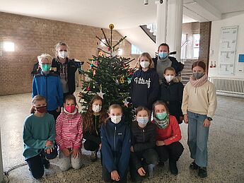 Dass die Bäume bereits pünktlich zum 1. Advent in der Schule stehen, verdanken wir einerseits unserer sehr engagierten „großen“ Schülervertretung, die zwei wunderschöne Weihnachtsbäume aufgetan und zur Schule transportiert hat, andererseits unserer „kleinen“ Junior-SV, die sehr engagiert Weihnachtsschmuck gestaltet und die Bäume dekoriert hat!