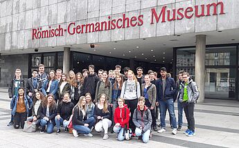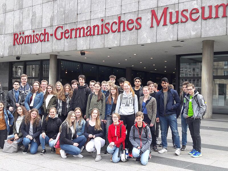 Die S‘uS erhielten einen Überblick über das alltägliche Leben im römischen Köln. Vor dem Hintergrund der Geschichte des römischen Reiches und des römischen Kölns zeichneten die uns gegebenen Informationen zu den einzelnen Denkmälern mosaikartig Gesellschaft, Kultur, Kunst, Handwerk und Religion nach. Gezeigt wurden uns archäologische Funde wie das berühmte Poblicius-Grabmal, das sehr beeindruckende Dionysos-Mosaik, Alltagsgegenstände aus Metall und Keramik, kostbare Gläser und Schmuck.