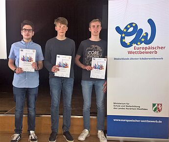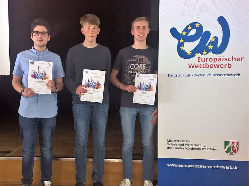 In verschiedenen thematischen Modulen konnten sich die Schüler diesem Oberthema nähern. So beschäftigte sich Jannik Junge, Schüler der Jahrgangsstufe 9, zum Beispiel mit dem Mecklenbecker Kriegerdenkmal, um es mit einem französischen in unserer Partnerstadt Orleans verglichen. Wie beide Länder ihrer Toten des Ersten und Zweiten Weltkrieges gedenken, bildete seine Leitfrage. Sein Wettbewerbsbeitrag konnte einen Dritten Preis erringen. Aleksandar Kovanusic, Schüler der Jahrgangsstufe Q 1, hatte sich unter dem Thema „Vom Hofmaler zum Selfie“ mit der Selbstdarstellung eines frühneuzeitlichen Territorialherren beschäftigt und mit Selbstinszenierung eines zeitgenössischen demokratisch legitimierten Präsidenten verglichen. Seine Arbeit wurde mit einem Zweiten Preis bedacht. Gleiches gilt für den Wettbewerbsbeitrag von Jakob Roth aus der Klasse 9. Seine Arbeit hatte den Zwinger in Münster und seine Geschichte zum Thema. Das Hittorf gratuliert den Teilnehmern und freut sich über ihren Erfolg.