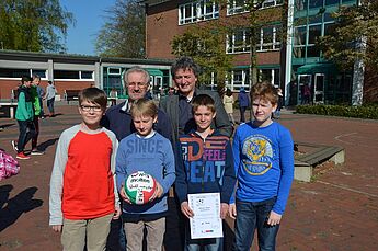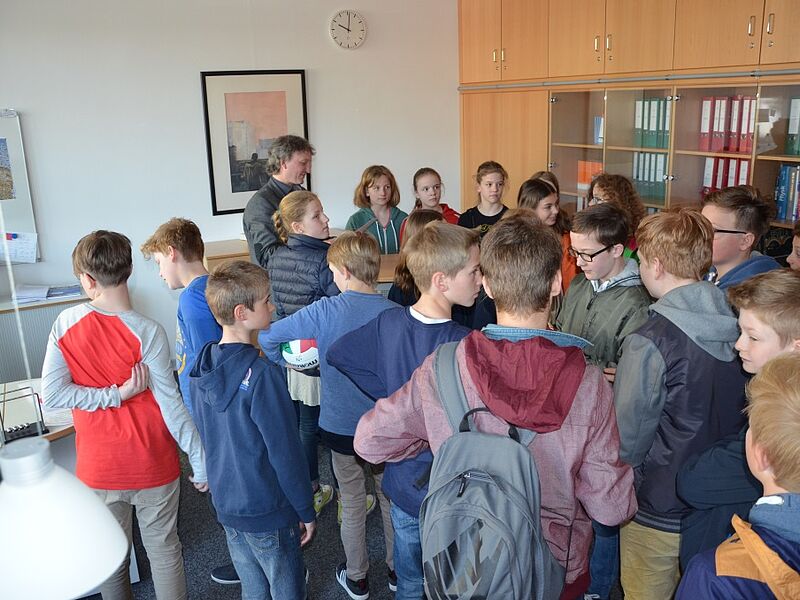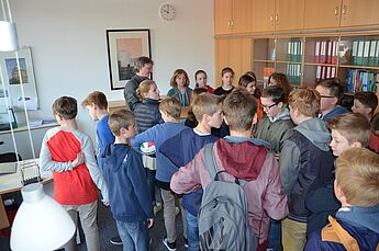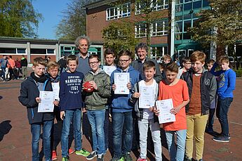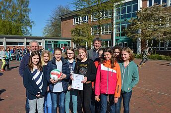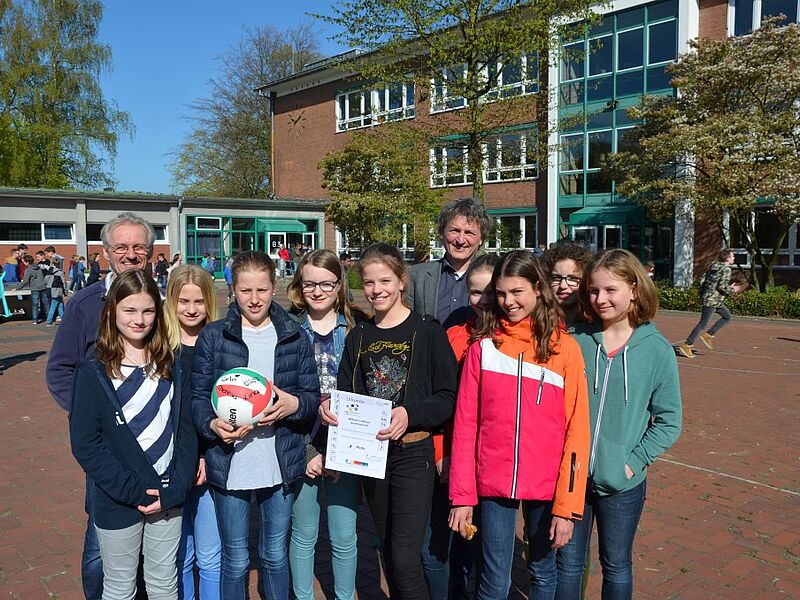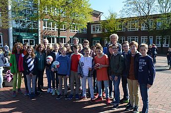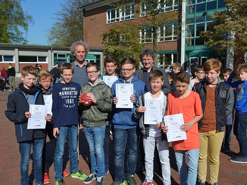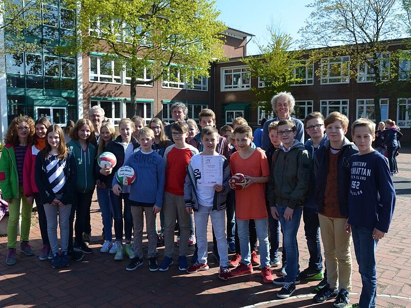 Da wurde es am Freitag in der großen Pause schon etwas eng im Zimmer des Schulleiters. Der wollte den Schülerinnen und Schülern der Wettkampfklasse IV im Handball und im Volleyball der Jungen und Mädchen seinen Dank aussprechen und hatte alle zu sich ins Büro geladen. Sie könnten stolz auf das geleistete sein und es wäre ein gutes Gefühl für einen Schulleiter zu wissen, dass so sportlich erfolgreiche Mannschaften an dieser Schule seien, betonte Herr Schrand.