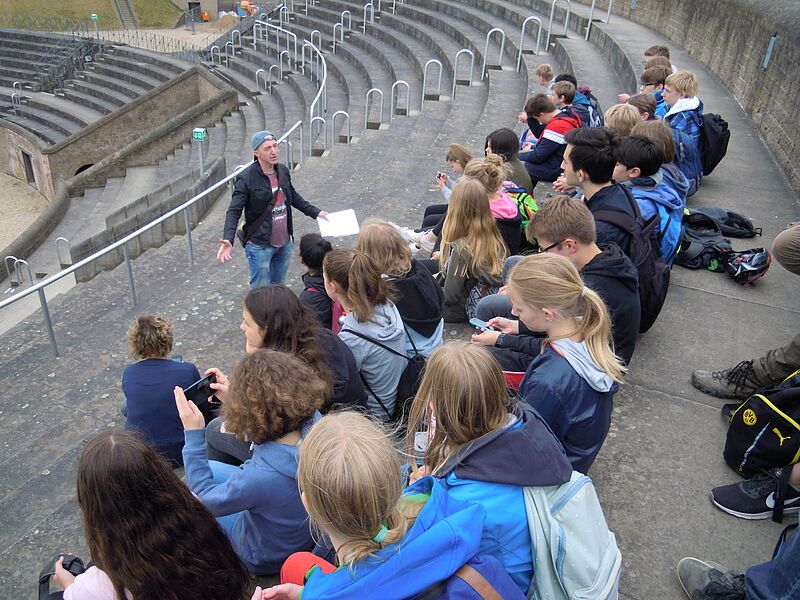 Unsere Lateiner wurden zunächst durch den Park geführt und lernten u. a. den rekonstruierten Hafentempel, das Nord-Tor der antiken Stadt, die Überreste des großen Stadtbades und natürlich das Amphitheater, einst Schauplatz grausamer Spektakel, heute kulturelles Highlight, kennen.
